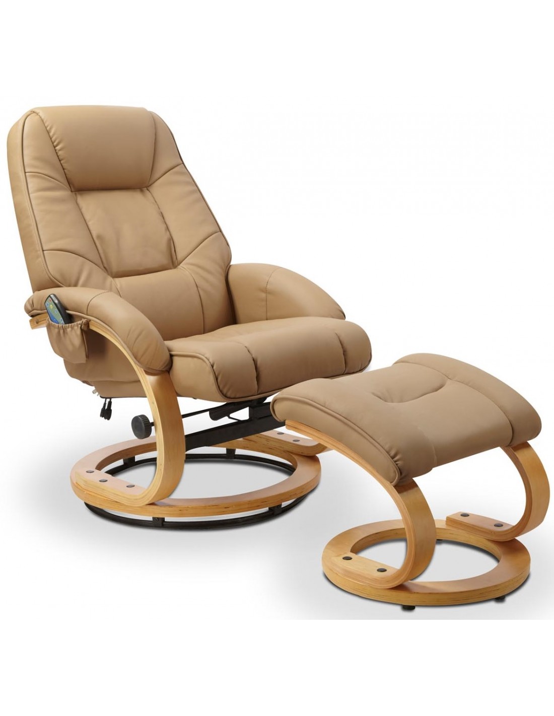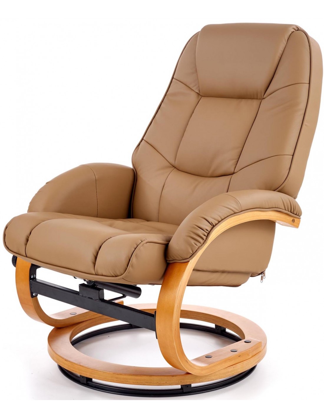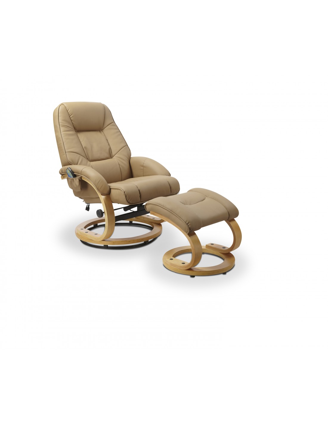 Fotel masujący podgrzewany rozkładany z podnóżkiem MATADOR beżowy do salonu i pokoju dziennego Halmar