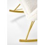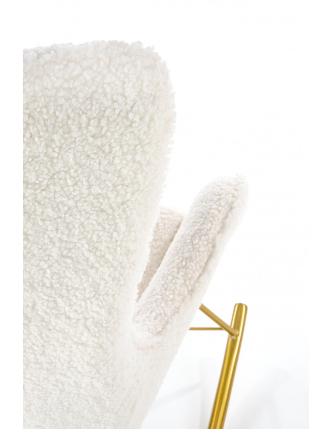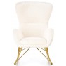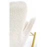 Fotel bujany na złotej podstawie tapicerowany tkaniną boucle