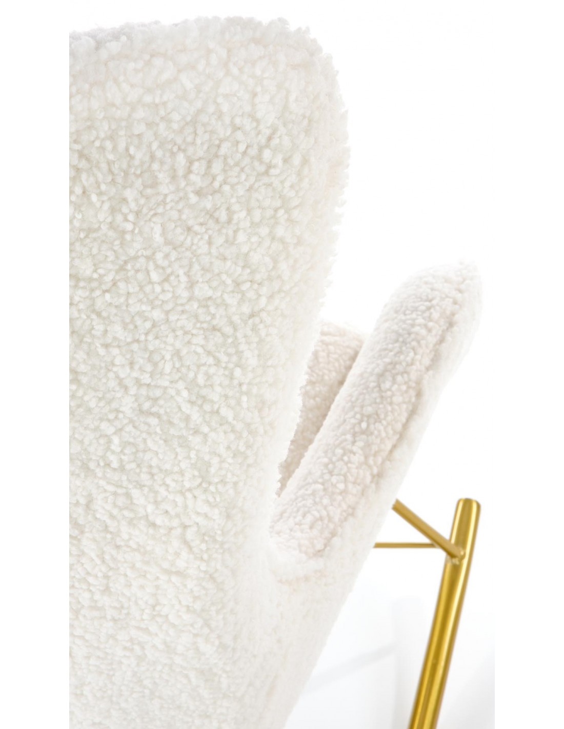 Fotel bujany glamour z tkaniny boucle LIBERTO kremowy na złotej podstawie do salonu i pokoju Halmar