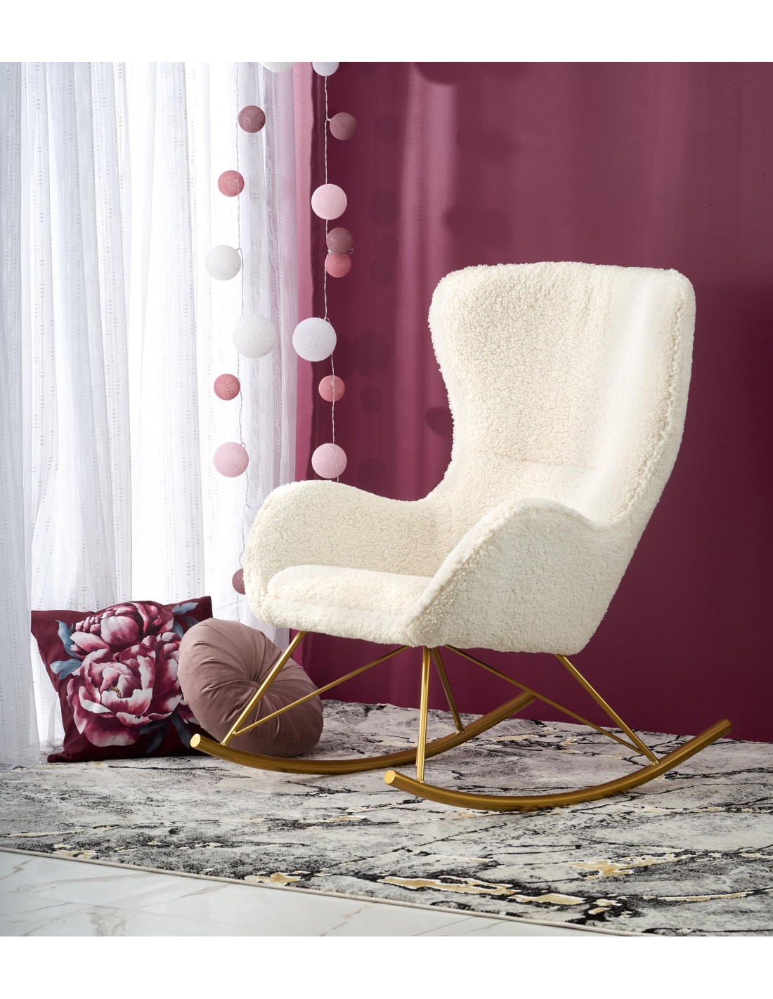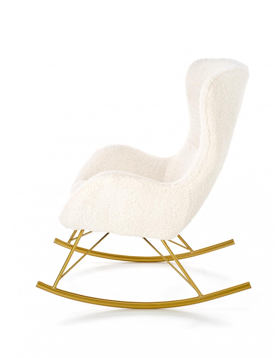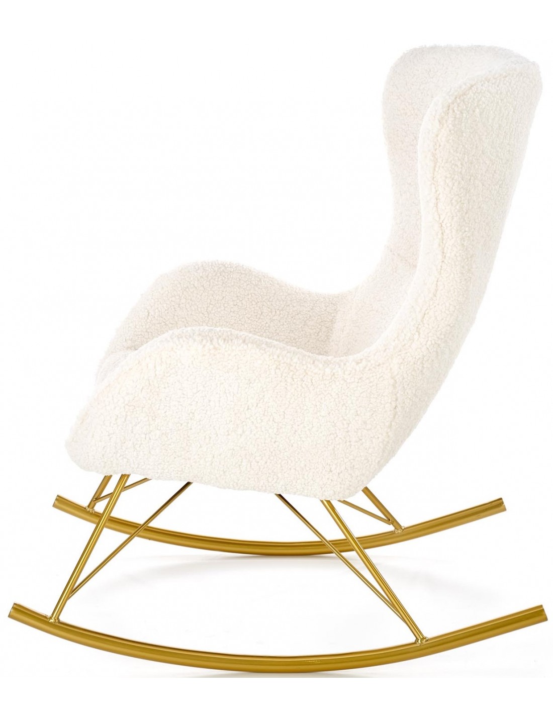 Przedstawiamy wyjątkowy fotel bujany. To oryginalny mebel, który swoje miejsce znajdzie niemalże wszędzie. LIBERTO będzie rewelacyjnym uzupełnieniem aranżacji w stylu glamour. Tapicerowany jest miękką i przytulną tkaniną boucle w kolorze kremowym. Tkanina boucle to rodzaj pełnej, mięsistej wręcz dzianiny, którą charakteryzuje wyjątkowa tekstura. Nowatorska tkanina boucle jest absolutną nowością we wnętrzach. Tapicerowane nią meble nadają aranżacjom niezwykle przytulnego charakteru. Całość wspiera się na bujanej podstawie ze stali chromowanej w kolorze złotym. Dodatkowo stal chromowana jest odporna na działanie korozji i zarysowania.