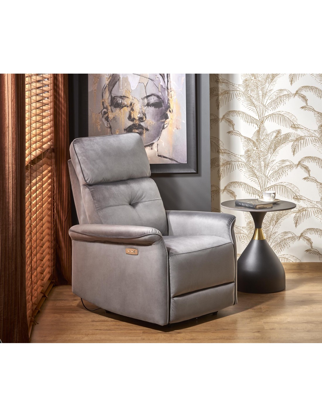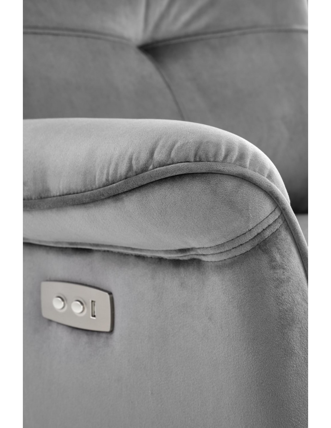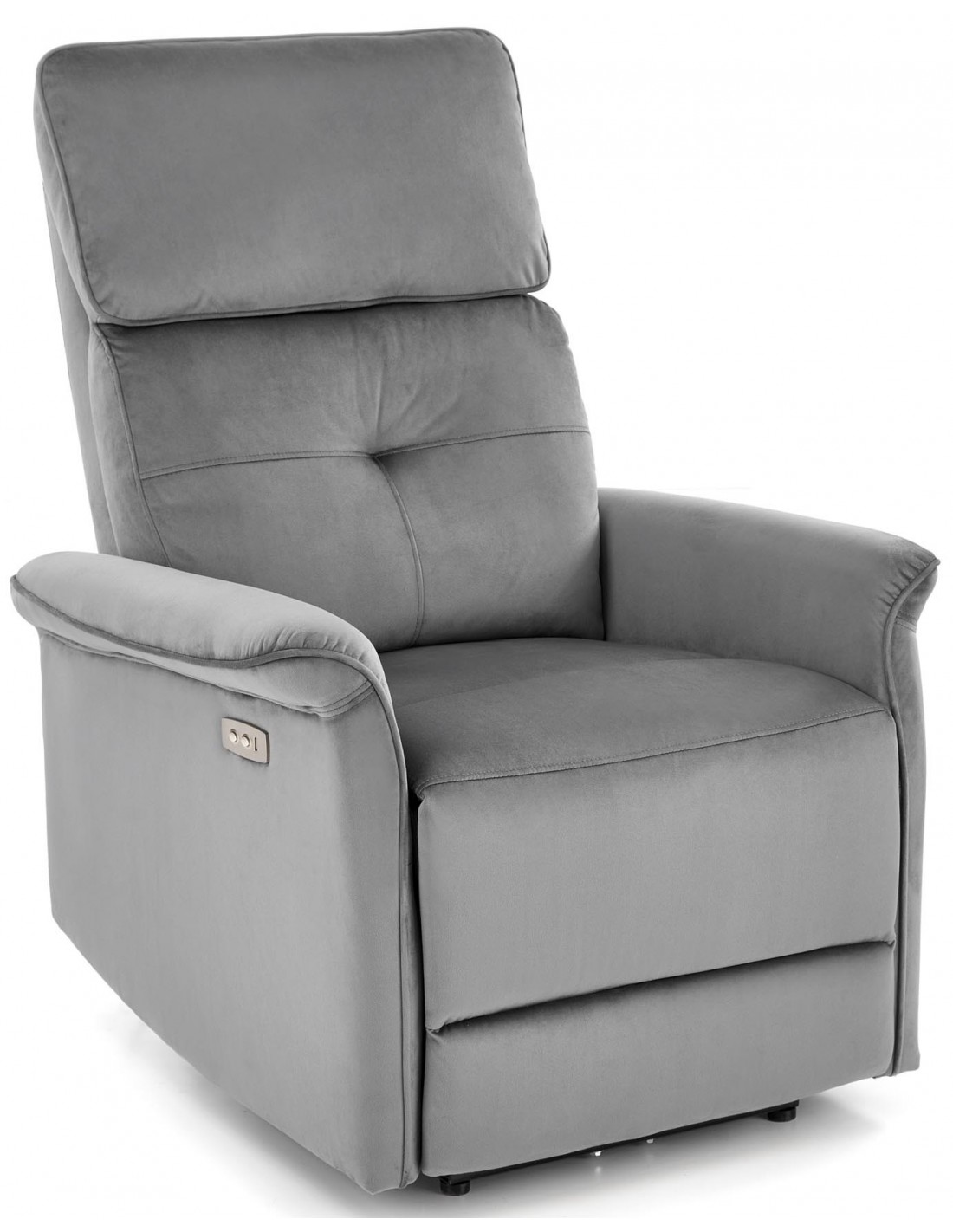 Fotel z funkcją elektrycznego rozkładania SEMIR szary z gniazdem USB do salonu i pokoju Halmar