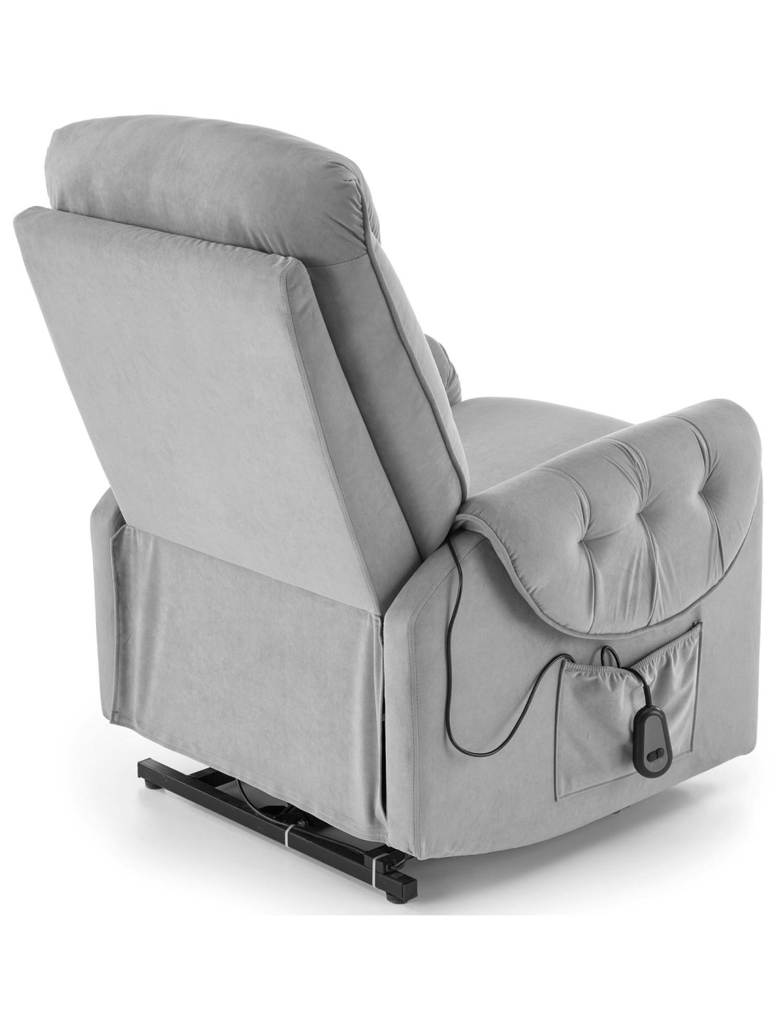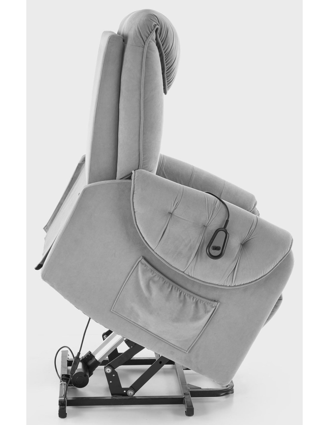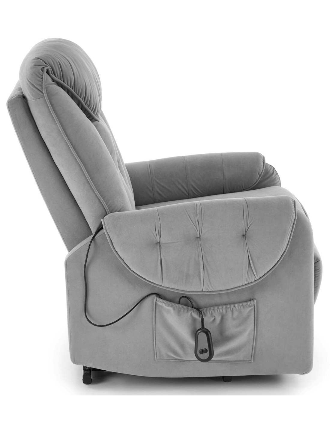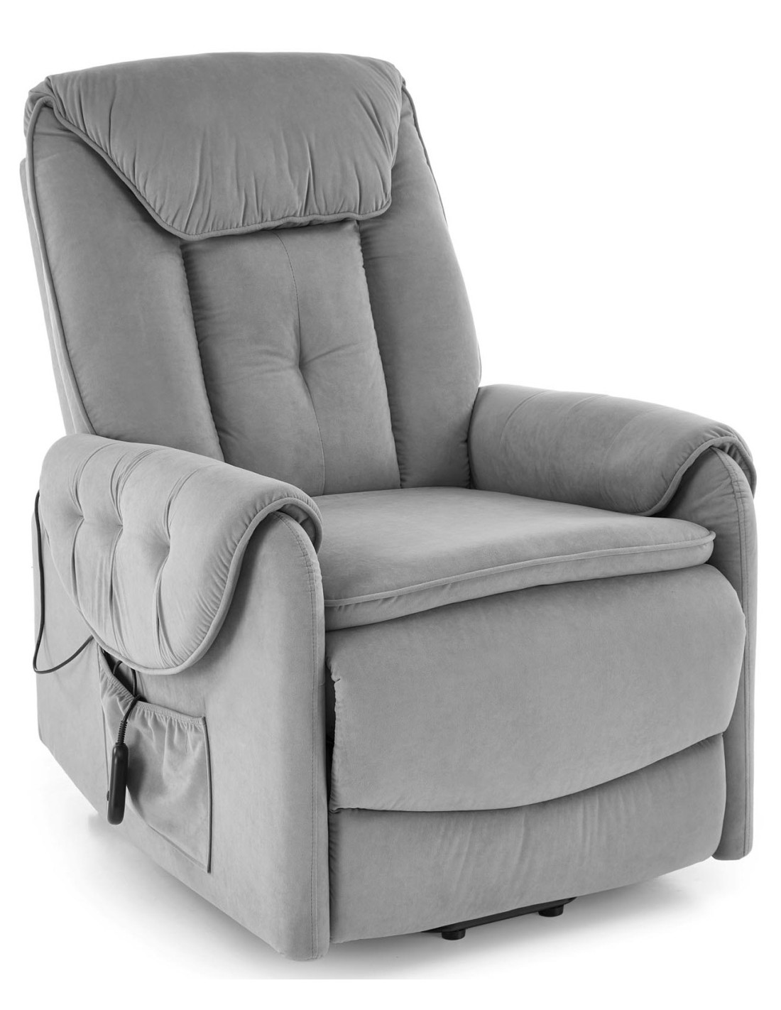 Fotel z elektrycznym rozkładaniem i funkcją pionizacji w stylowym szarym odcieniu