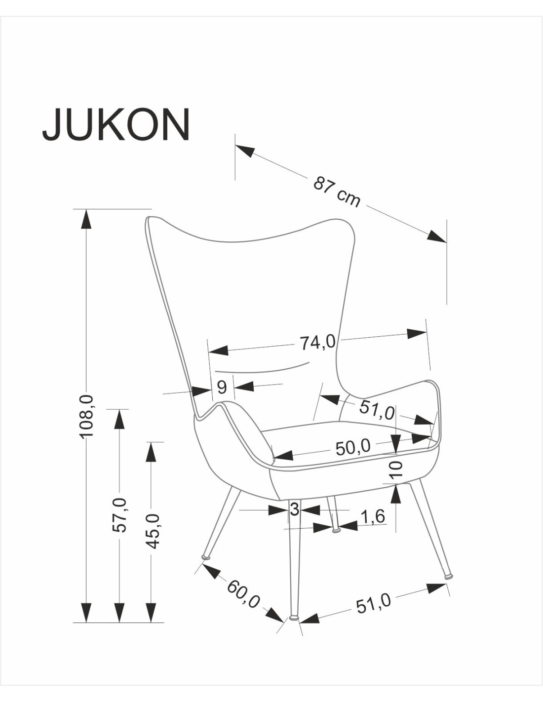Model JUKON wyróżnia się wysokim oparciem oraz szerokimi podłokietnikami, które gwarantują komfort i wsparcie dla pleców oraz ramion. Charakterystyczny kształt „uszaka” otula ciało, tworząc przestrzeń idealną do relaksu. Siedzisko o odpowiednich wymiarach sprawia, że każda chwila spędzona na fotelu to czas wygody i odpoczynku.