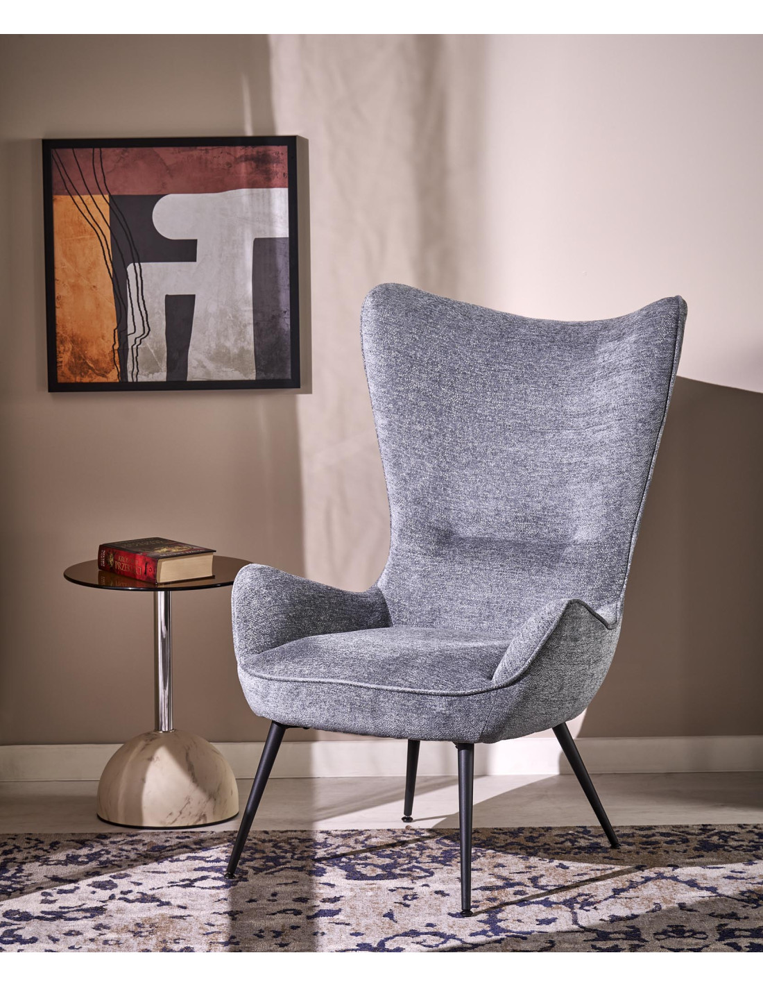 Fotel wypoczynkowy tapicerowany JUKON szary na czarnych nóżkach do salonu i pokoju dziennego Halmar