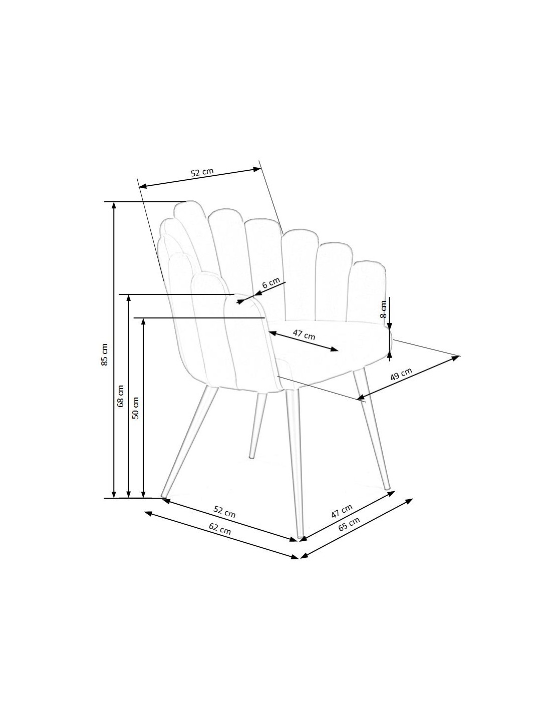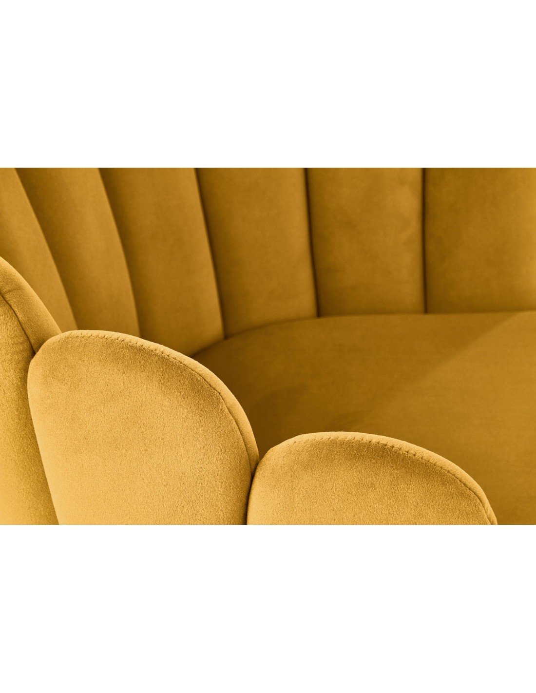 Krzesło o nietuzinkowym designie, który zachwyca swoją formą. Wyglądem przypomina urokliwą muszelkę. Głębokie przeszycia na oparciu wyglądają, jak osobne segmenty, co pozwoliło uzyskać wyjątkowy efekt muszli. Krzesło pokryte jest miękką i przyjemną w dotyku tkaniną velvet w pięknym kolorze. Tkanina velvet jest bardzo łatwa w utrzymaniu w czystości, ponieważ charakteryzuje się bardzo łatwą zmywalnością i minimalnym ryzykiem pojawienia się zacieków lub odbarwień. Krzesło wspiera się na czterech nogach ze stali malowanej proszkowo, odznaczającej się wysoką odpornością na uszkodzenia mechaniczne i korozję.
