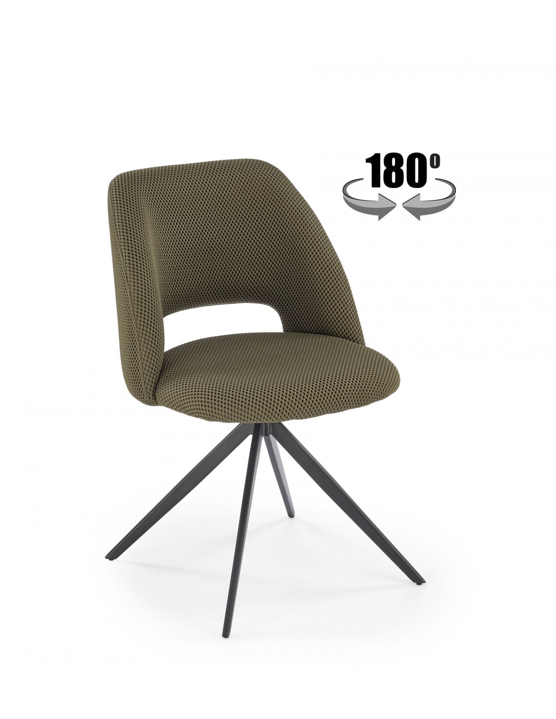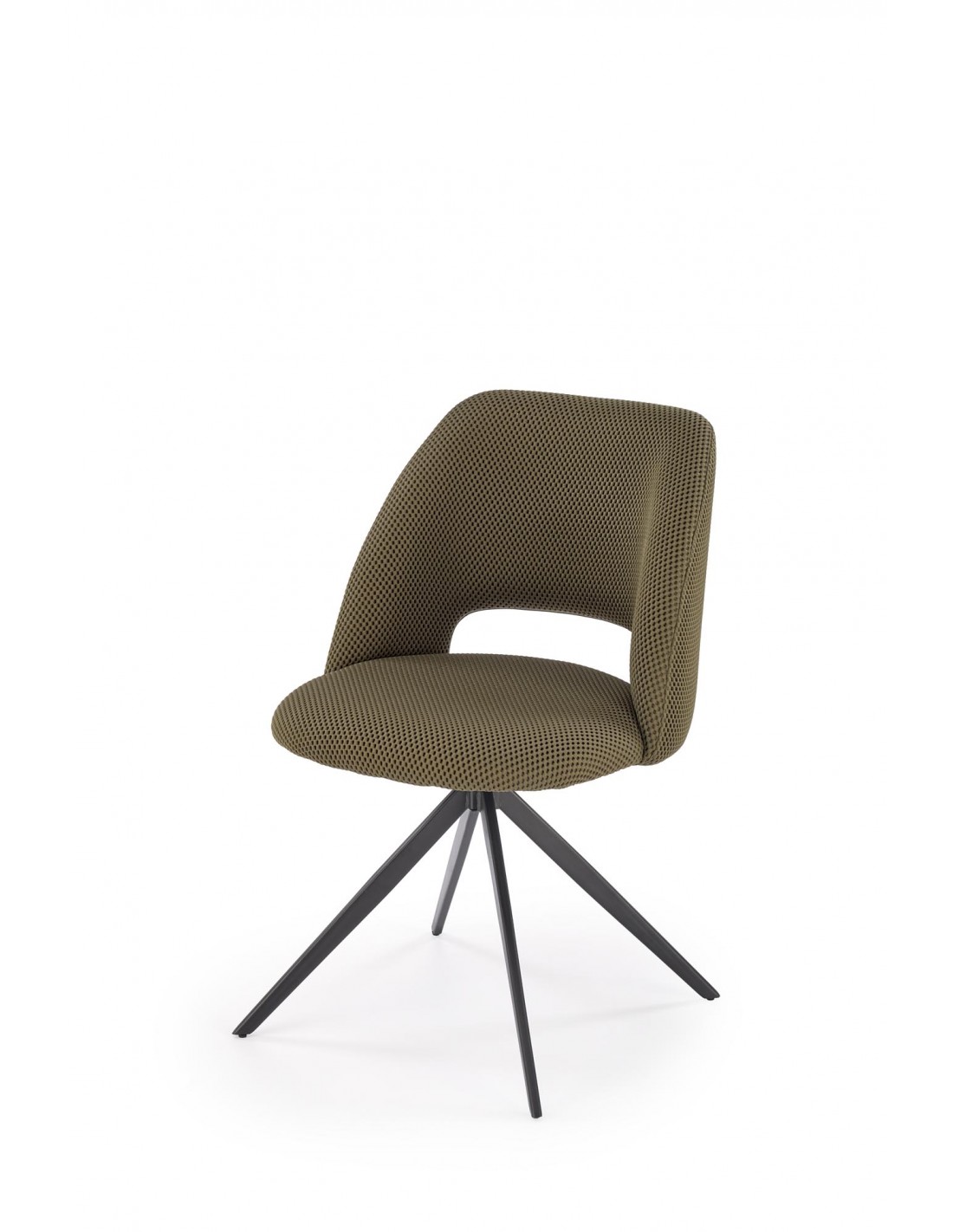 Krzesło metalowe nowoczesne obrotowe K546 oliwkowe czarne tapicerowane do salonu i jadalni Halmar